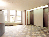 緑の遊歩道を通って、ロビーへ。ここは自然の光にあふれた、優しさの空間です。白樺が茂っているかのような吹き抜けと、青空を連想させる天井の青色、ガラスの壁面、柔らかな色調の床・・・。ロビーにはくつろぎとゆとりの調べが流れているようです。