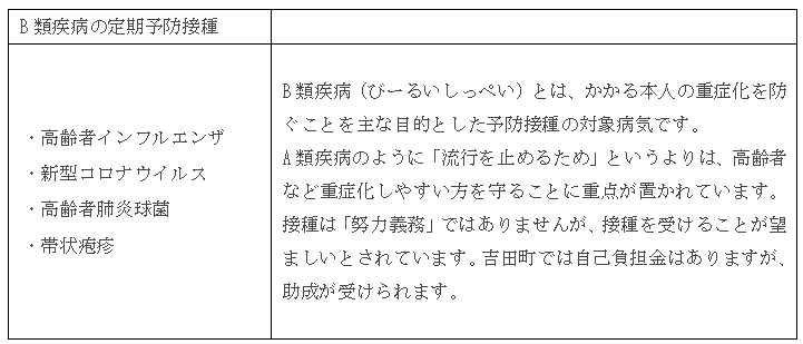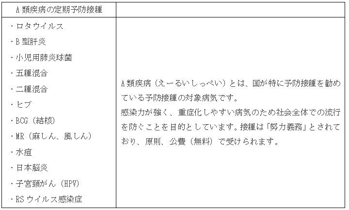 ▼予防接種依頼書等発行の対象となる定期予防接種は、A類疾病とB類疾病です。