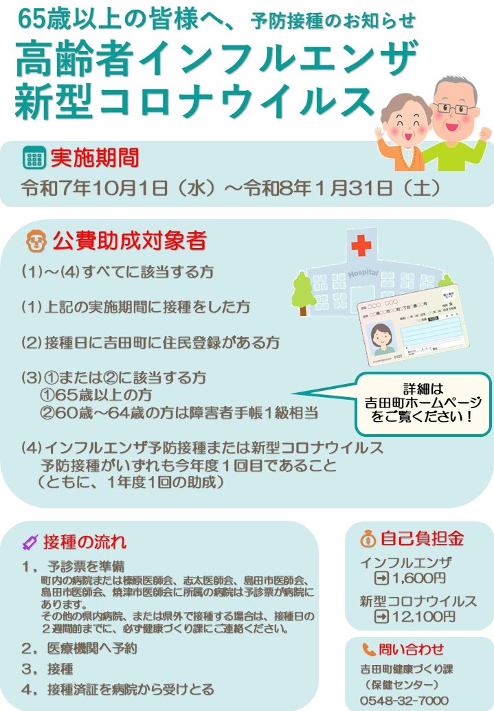 このチラシは広報よしだ9月号・町ホームページ・町ライン・ポスター配架(役場、保健センター、総合体育館、中央公民館、町内医療機関等)でお知らせしています。