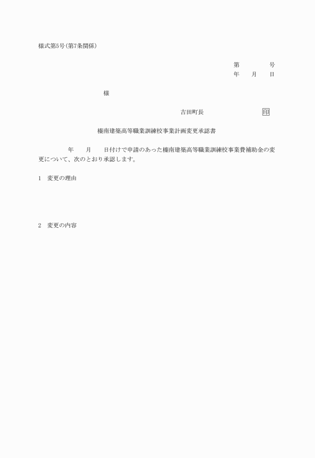 第3条 訓練校は、補助金の交付を受けようとするときは、榛南建築高等職業訓練校事業費補助金交付申請書(様式第1号)に次に掲げる書類を添えて、町長に提出しなければならない。